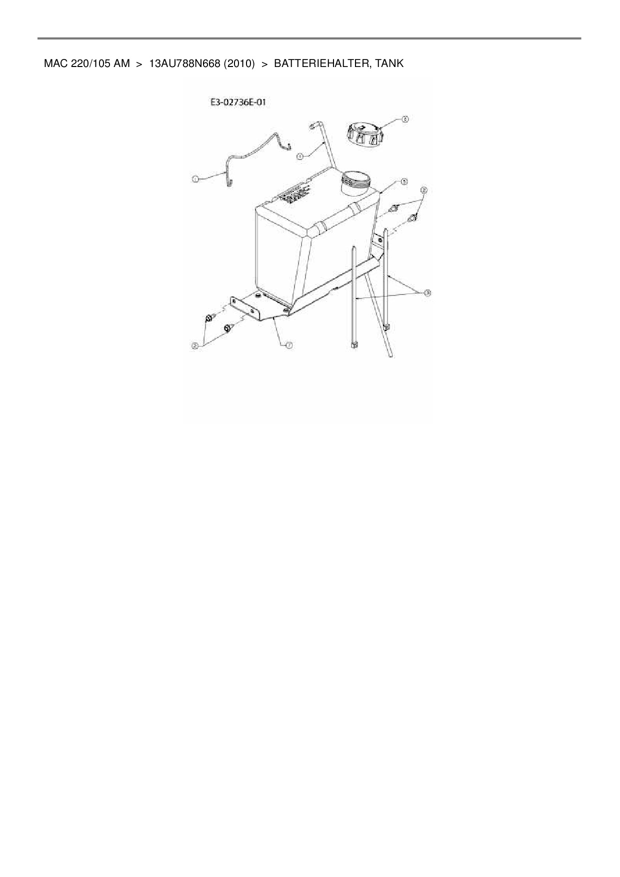 Ersatzteile für Rasentraktor Mac Allister Mac 220/105 AM aus der Zeichnung Batteriehalter, Tank: