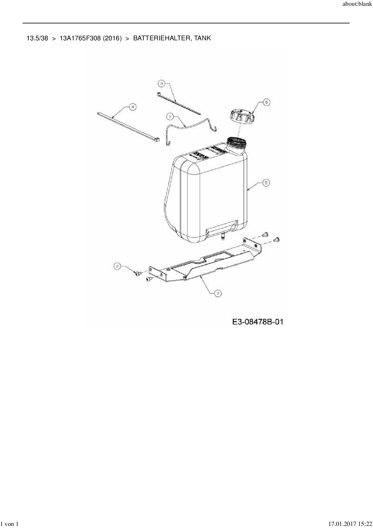 Ersatzteile für Rasentraktor MTD 13.5/38 aus der Zeichnung Batteriehalter, Tank: