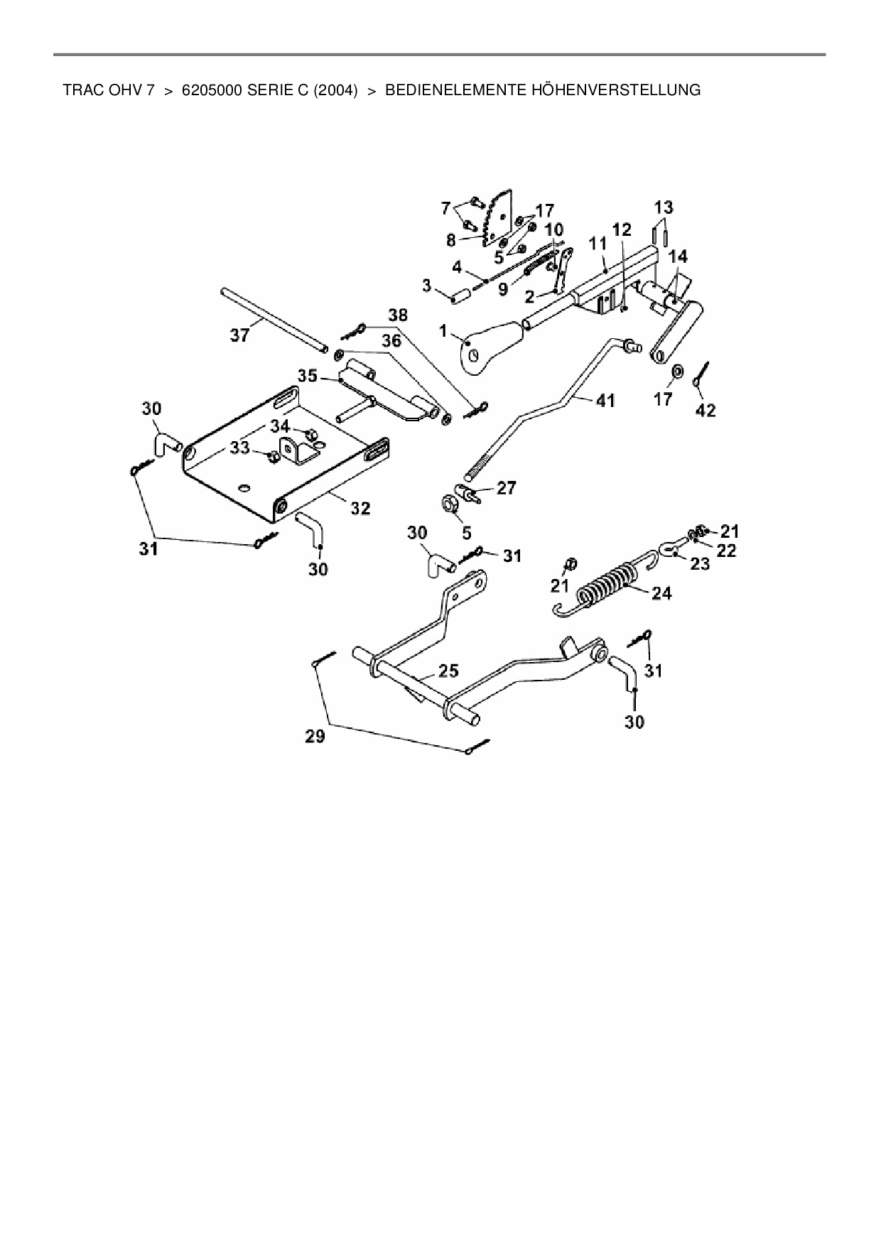 Ersatzteile für Rasentraktor Wolf-Garten Trac OHV 7 aus der Zeichnung Bedienelemente Höhenverstellung: