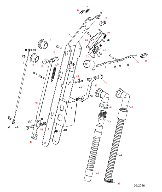 Zeichnung von Erco Scheuersaugmaschinen NR-E46C Bedienhebel, Rohre: