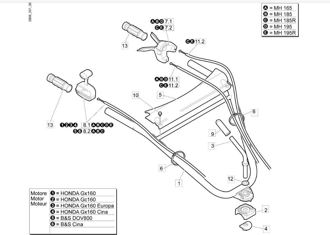 Zeichnung Oleo-Mac Motorhacken MH 195 R: