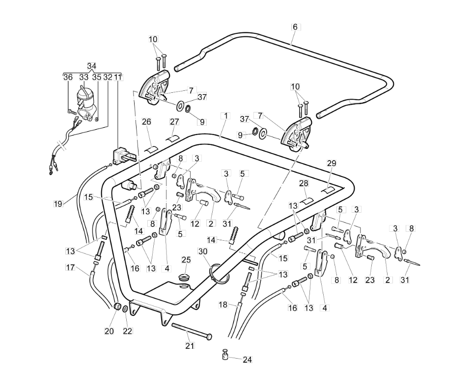 Hier finden Sie alle Ersatzteile für Oleo-Mac Raupentransporter CR 350 R (Italia) aus der Zeichnung für Bedienung Lenkstange:
