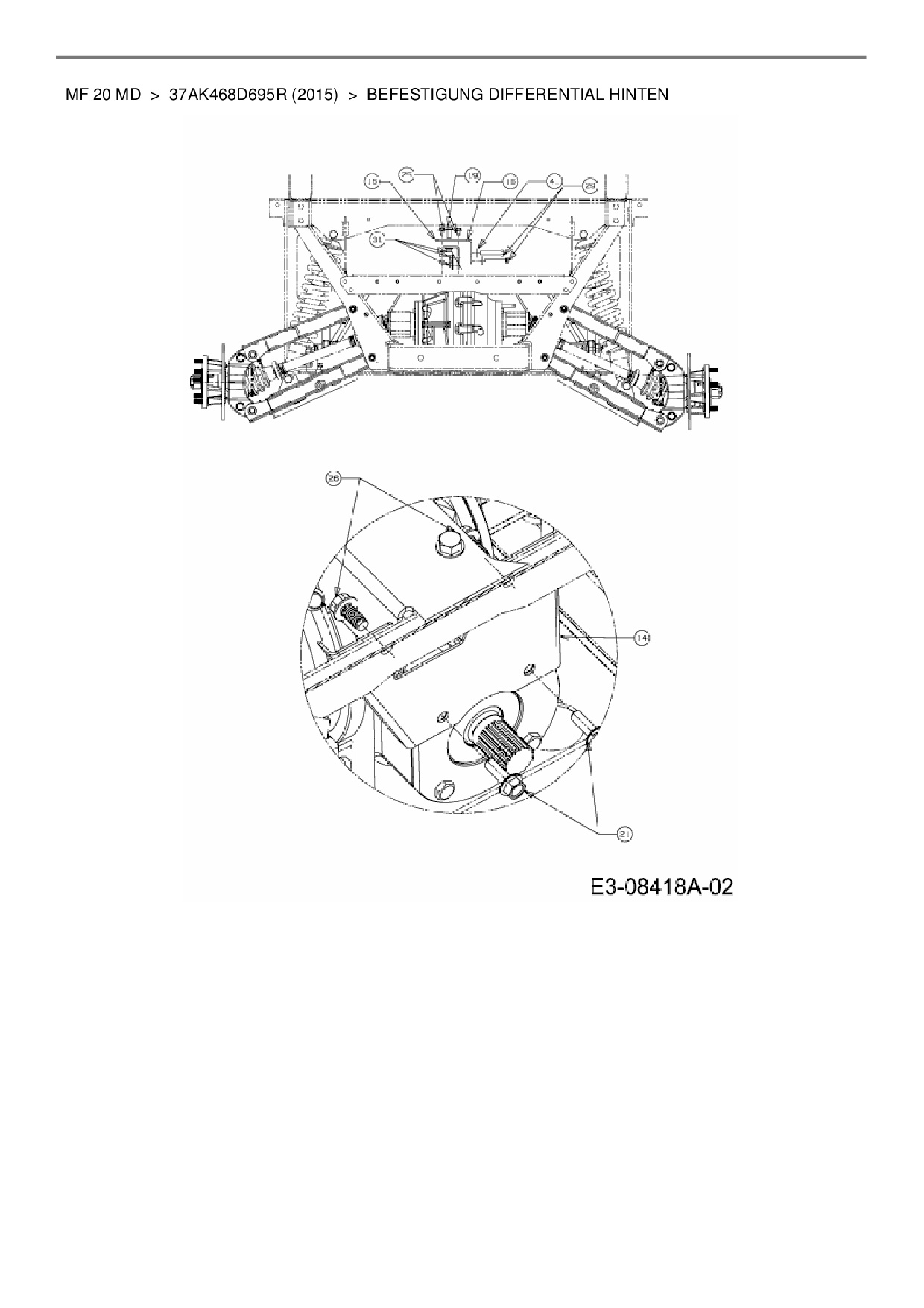 Ersatzteile für Utility Vehicle Massey Ferguson MF 20 MD aus der Zeichnung Befestigung Differential hinten: