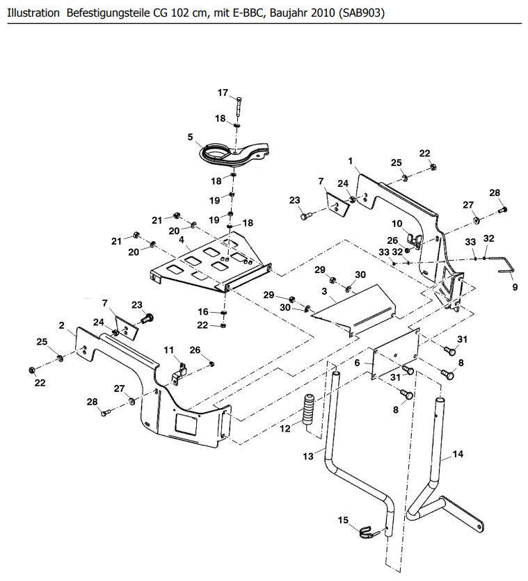 Hier finden Sie alle Ersatzteile von Sabo Rasentraktoren Frontmäher Anbaugeräte Befestigungsteile CG 102 cm, mit E-BBC, Baujahr 2010 (SAB903):