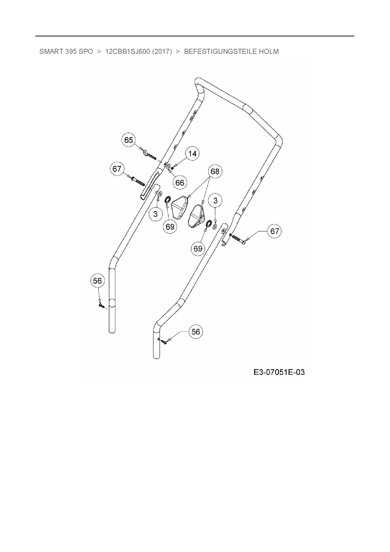 Ersatzteile für Motormäher mit Antrieb MTD Smart 395 SPO aus der Zeichnung Befestigungsteile Holm: