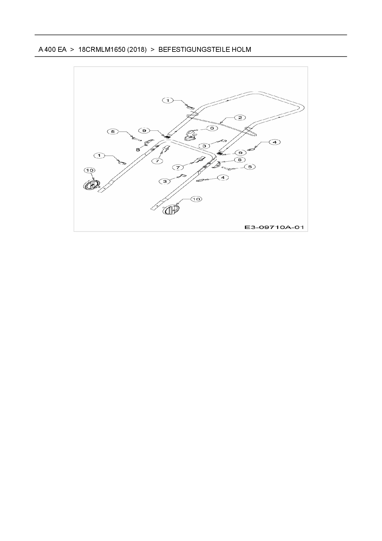Ersatzteile für Elektromäher mit Antrieb Wolf-Garten A 400 EA aus der Zeichnung Befestigungsteile Holm: