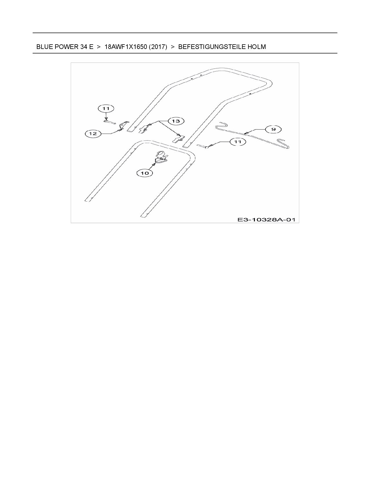 Ersatzteile für Elektromäher Wolf-Garten Blue Power 34 E aus der Zeichnung Befestigungsteile Holm: