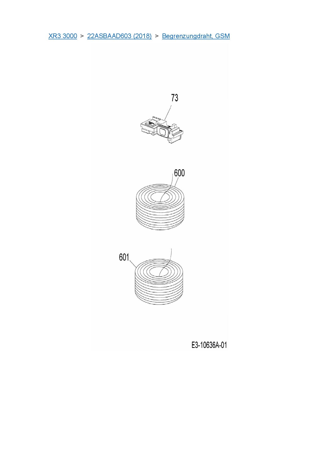 Ersatzteile für Mähroboter Cub Cadet XR3 3000 aus der Zeichnung Begrenzungdraht, GSM: