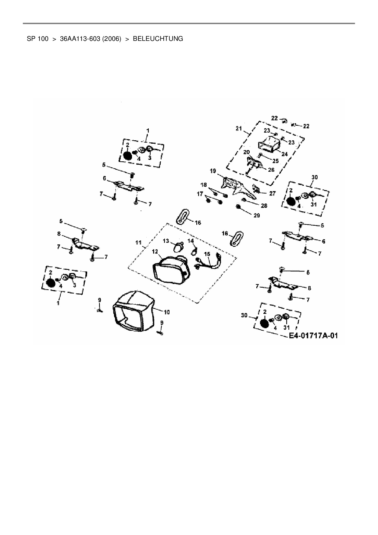 Ersatzteile für Quad Cub Cadet SP 100 aus der Zeichnung Beleuchtung:
