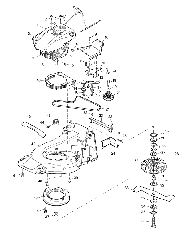 Benzinmotor, Mähwerk