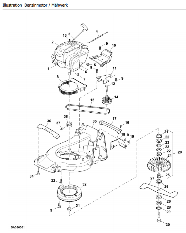 Zeichnung Sabo Rasenmäher Benzin-Rasenmäher 47-A ECONOMY EDV-NR. SA211519 Benzinmotor, Mähwerk: