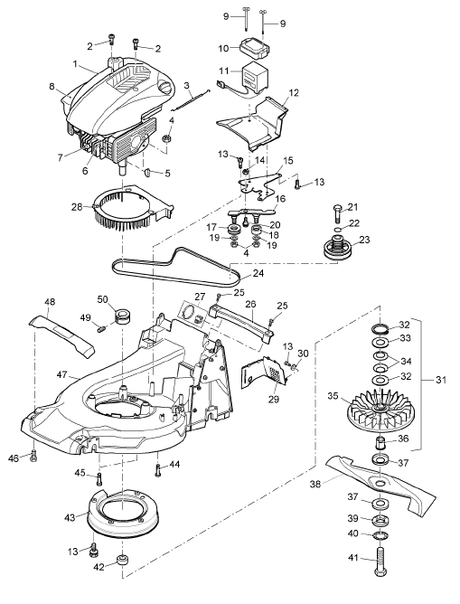 Benzinmotor, Mähwerk