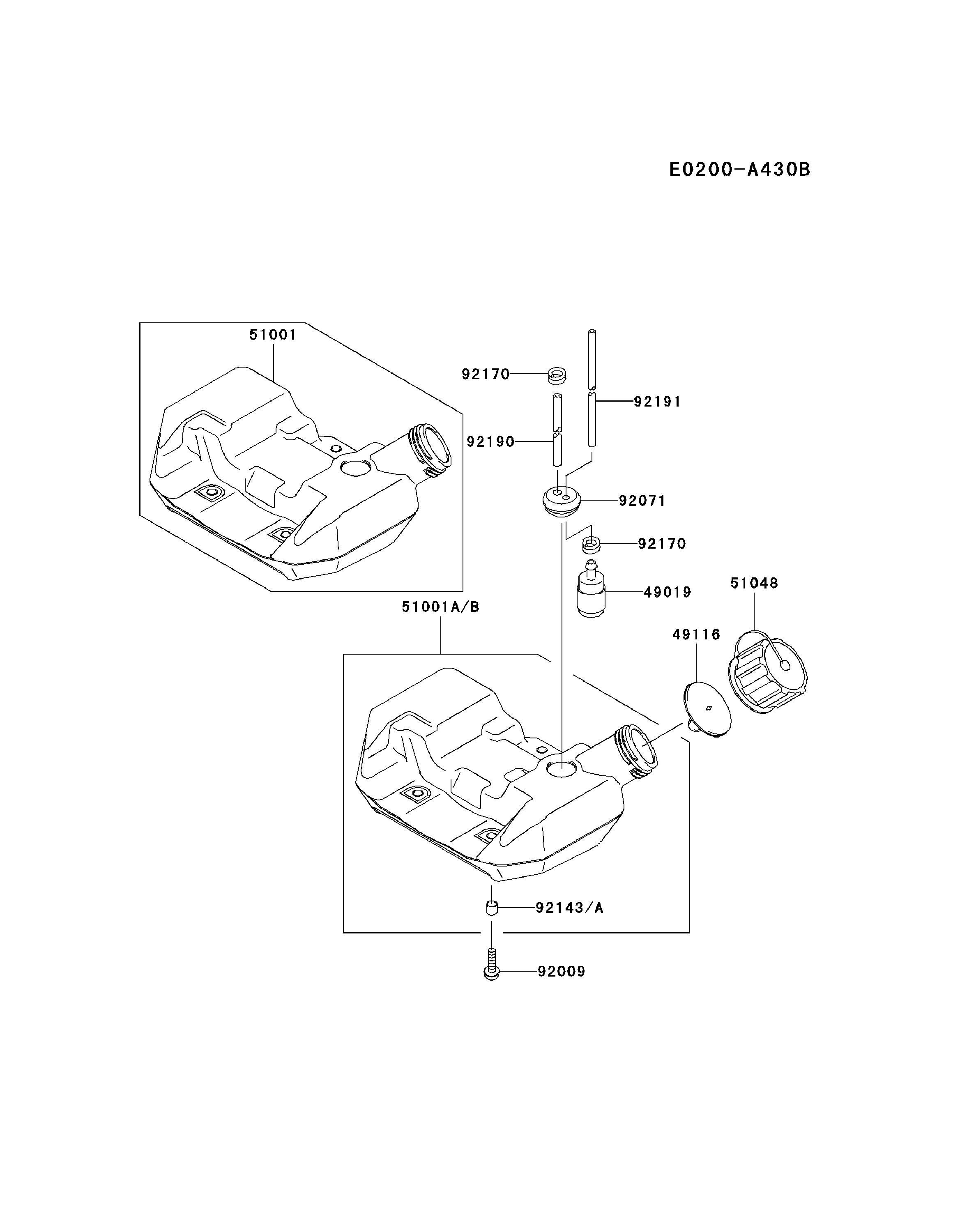 Hier finden Sie alle Ersatzteile von Kawasaki Freischneider HA034F-AS53 (KBL34A) aus der Zeichnung Benzintank/Treibstoffventil: