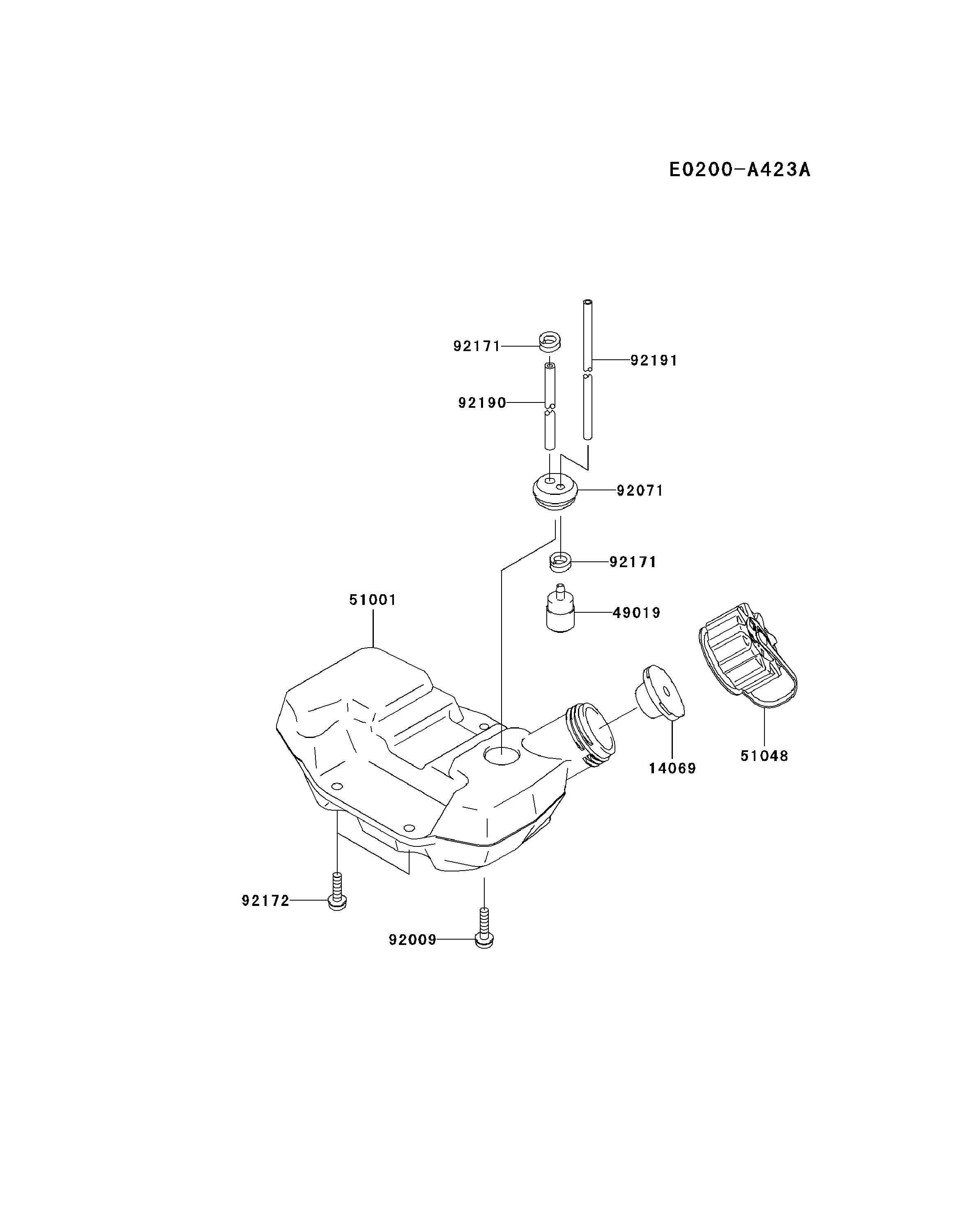 Hier finden Sie alle Ersatzteile von Kawasaki Kantenschneider HE027A-AS00 (KEL27A) aus der Zeichnung Benzintank/Treibstoffventil: