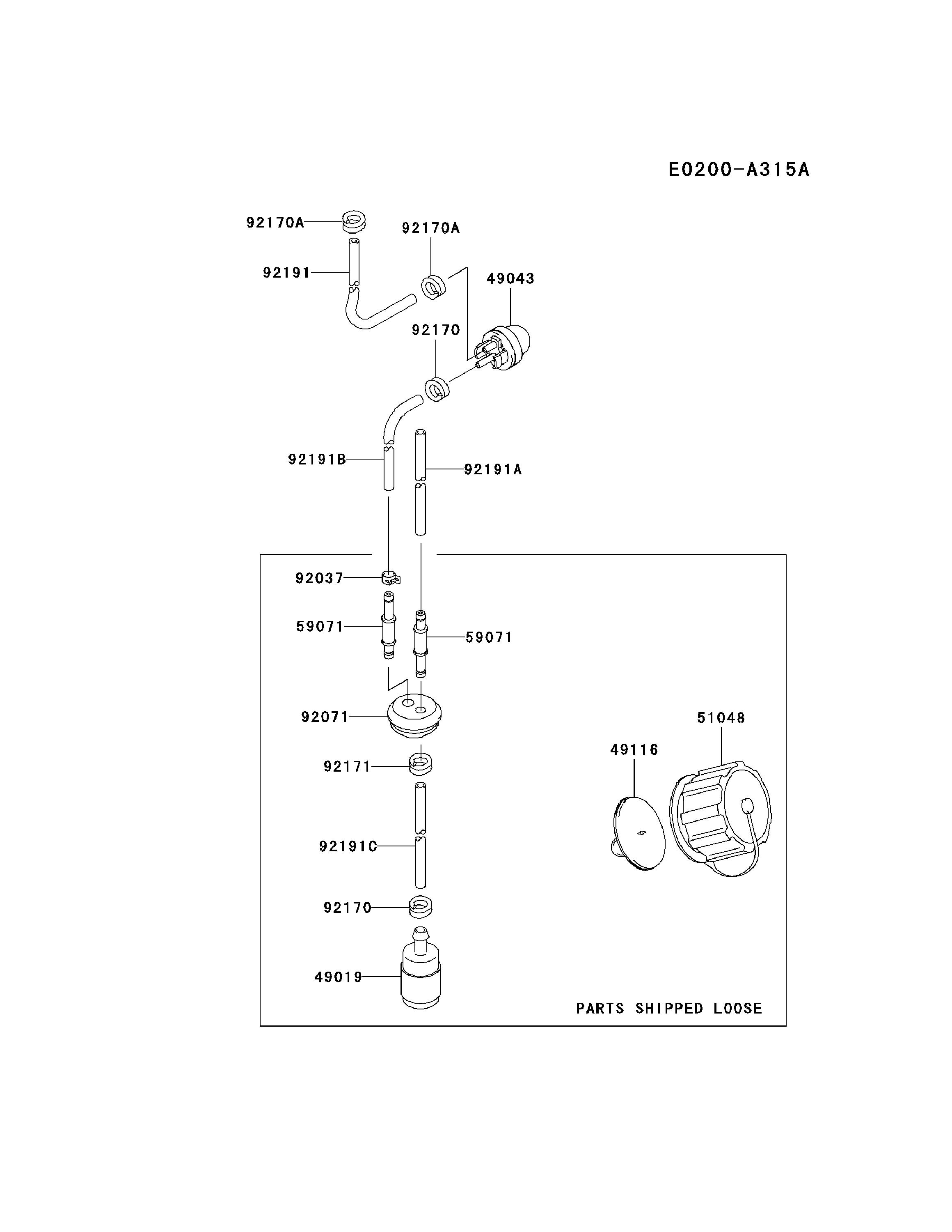 Hier finden Sie alle Ersatzteile von Kawasaki Laubbläser HG400A-AS03 (KRB400B) aus der Zeichnung Benzintank/Treibstoffventil: