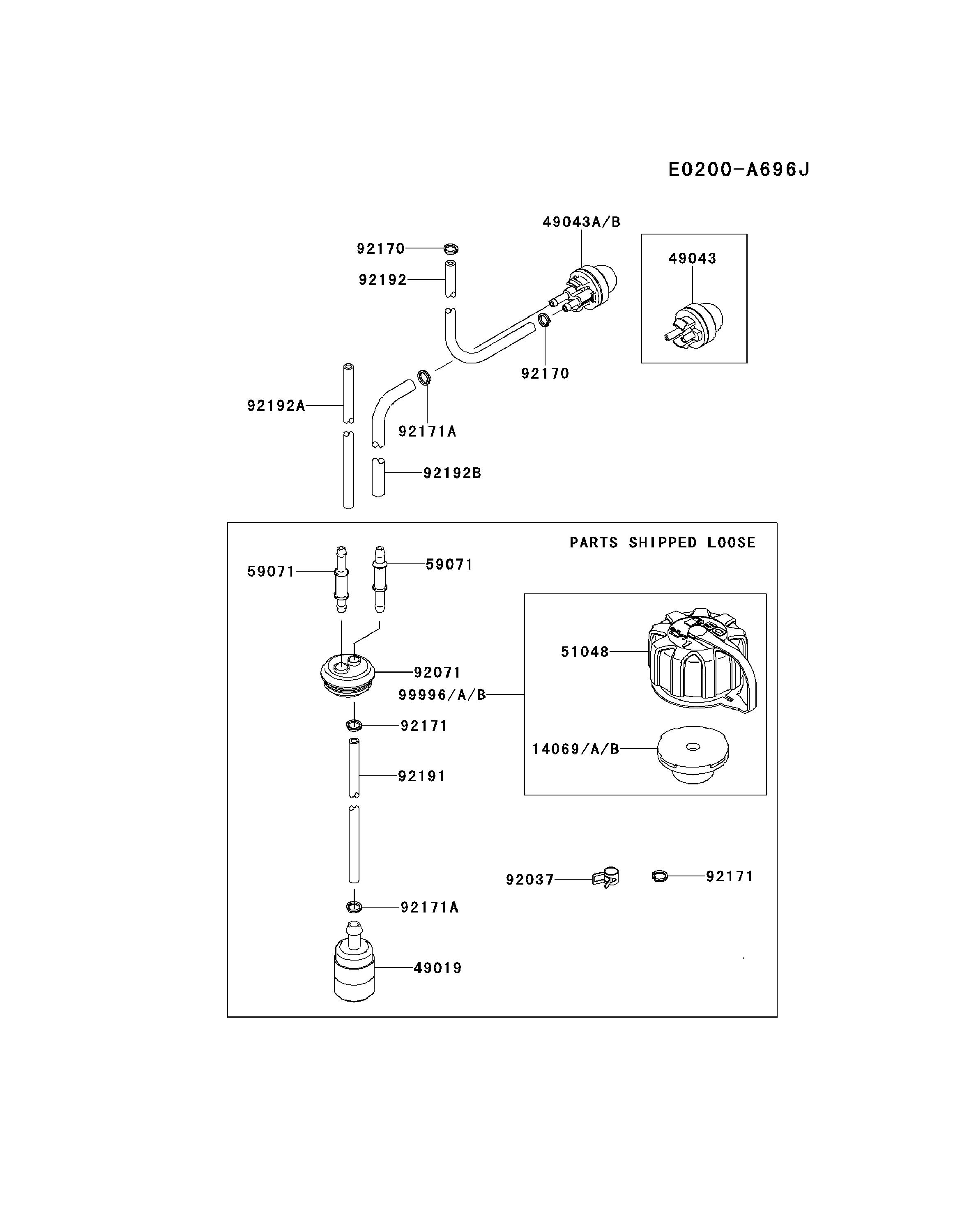 Hier finden Sie alle Ersatzteile von Kawasaki Laubbläser HG650A-AS50 (KRB650B) aus der Zeichnung Benzintank/Treibstoffventil: