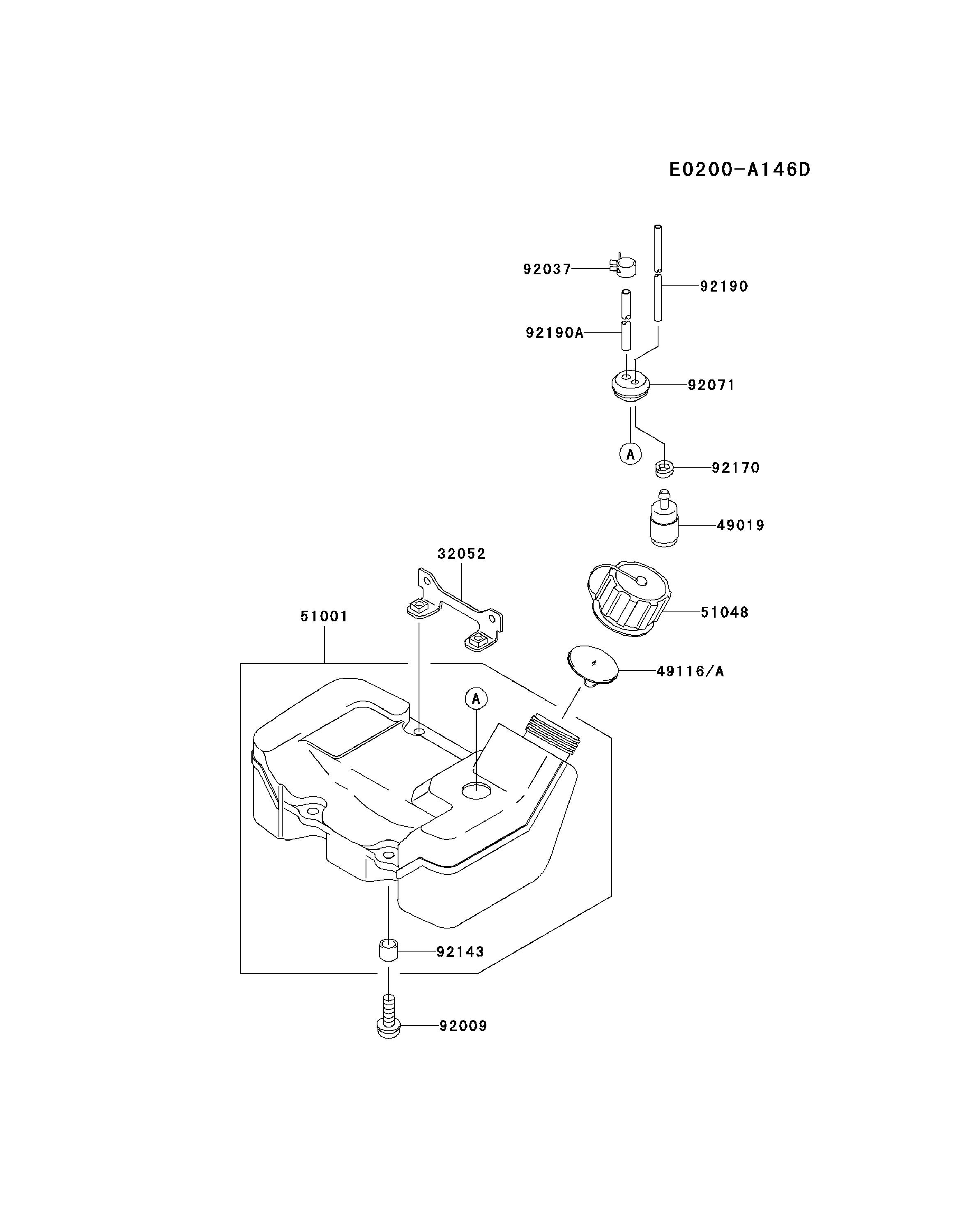 Hier finden Sie alle Ersatzteile von Kawasaki Freischneider HA048F-BS52 (KBH48A) aus der Zeichnung Benzintank/Treibstoffventil: