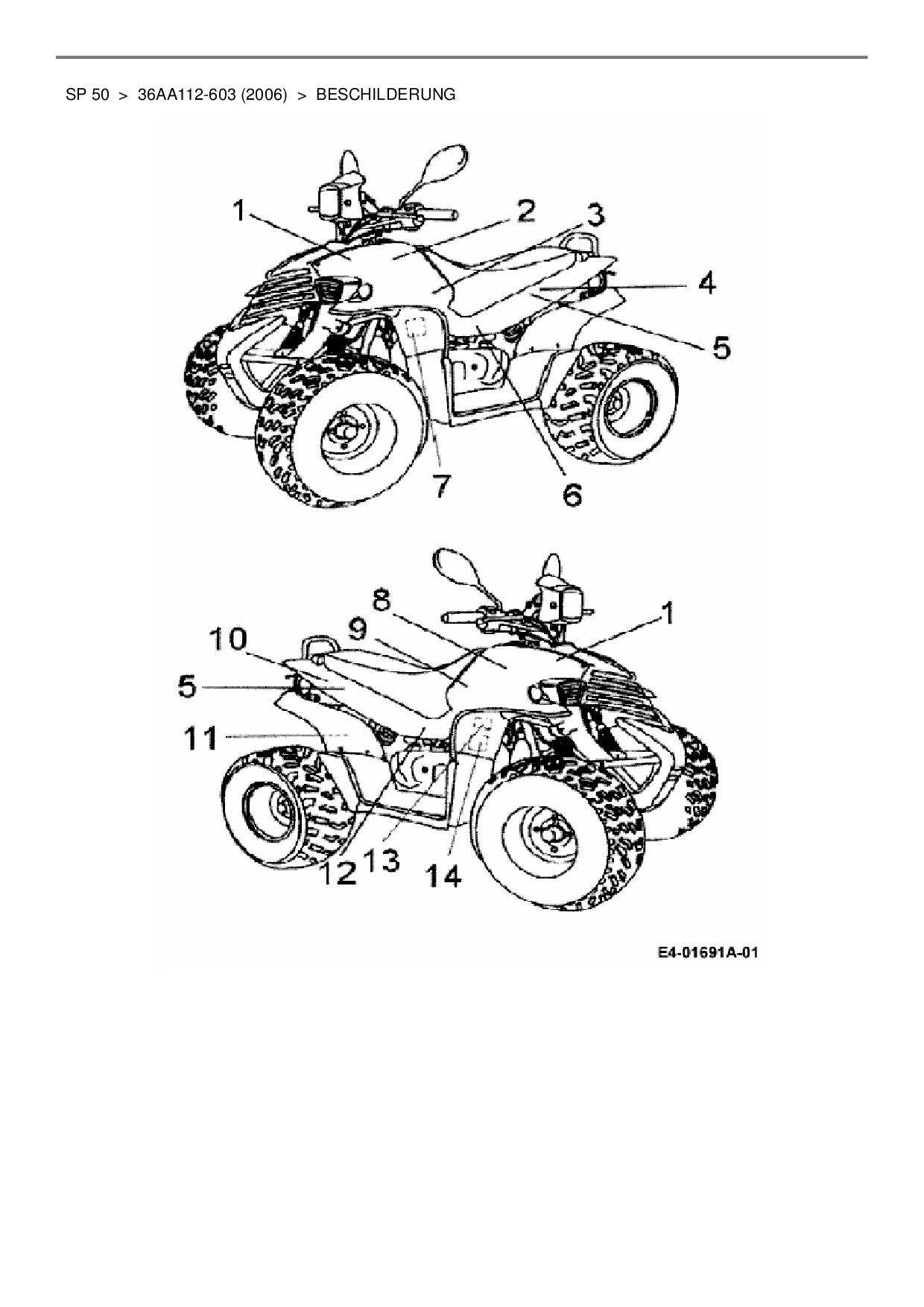 Ersatzteile für Quad Cub Cadet SP 50 aus der Zeichnung Beschilderung: