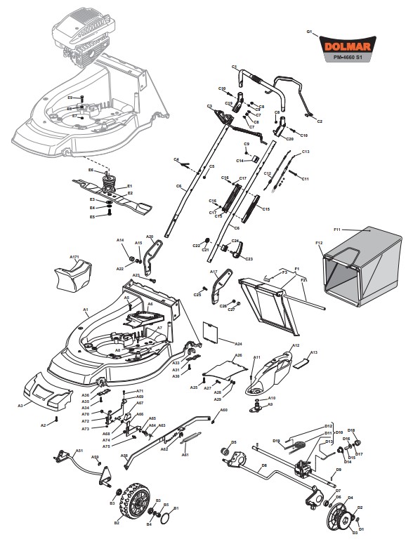 Ersatzteile für Dolmar Rasenmäher Benzin PM-4660 S1 Bj. 2015-2018:
