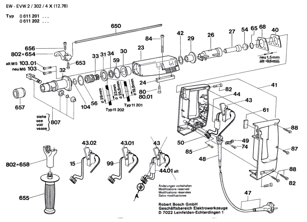 Zeichnung Bosch Bohrhammer 0 611 201 007: