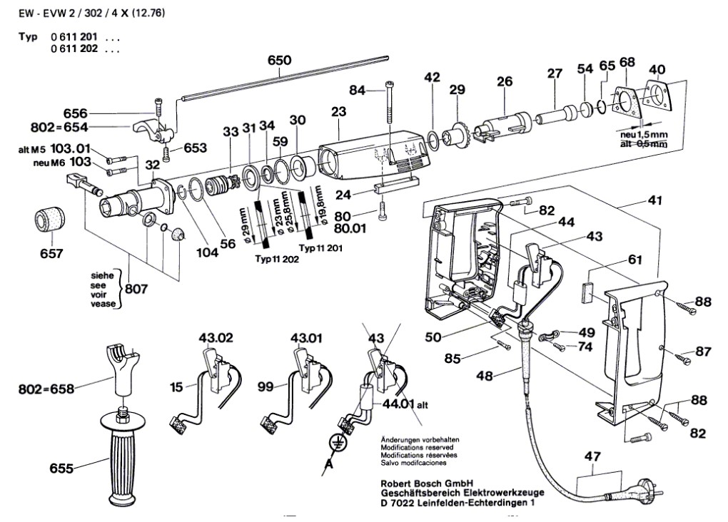 Zeichnung Bosch Bohrhammer 0 611 201 036: