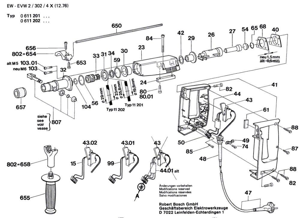 Zeichnung Bosch Bohrhammer 0 611 202 933:
