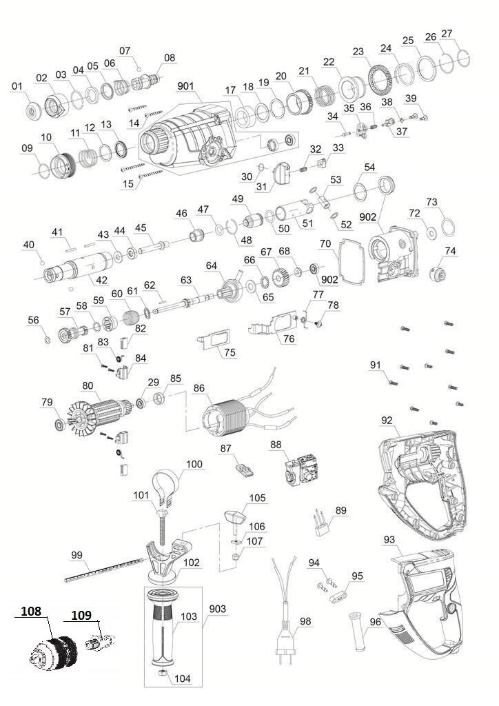 Folgende Ersatzteile für Einhell Expert Bohrhammer TE-RH 950 5F for Kit ( 4257979 ) können Sie hier bestellen: