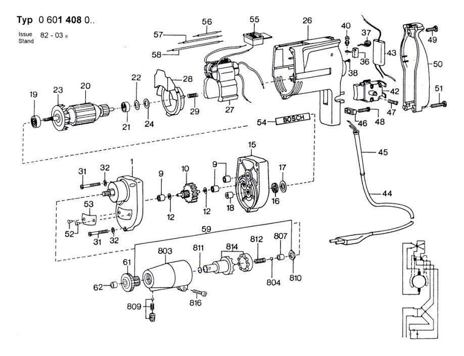 Zeichnung Bosch Bohrschrauber 0 601 408 001:
