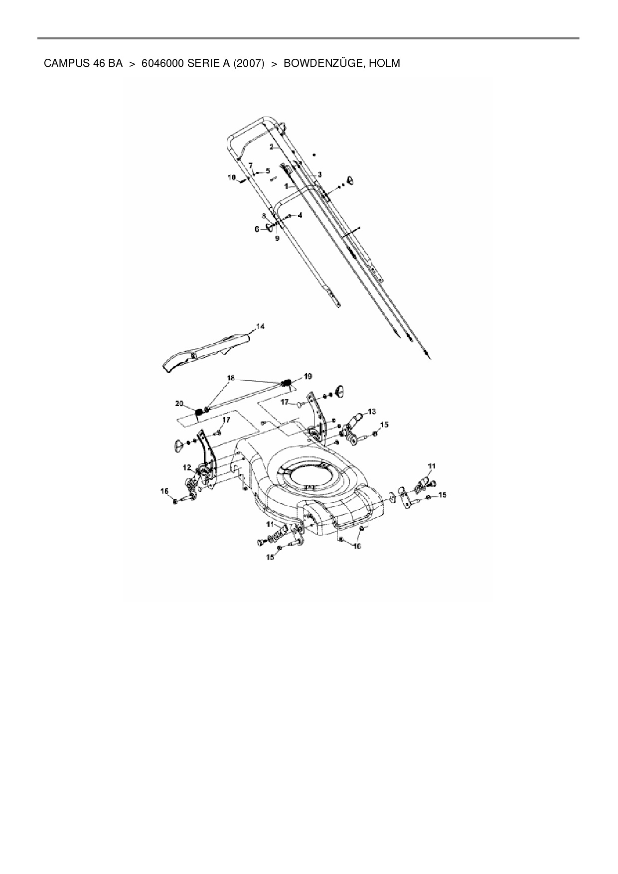 Ersatzteile für Motormäher mit Antrieb Wolf-Garten Campus 46 BA aus der Zeichnung Bowdenzüge, Holm: