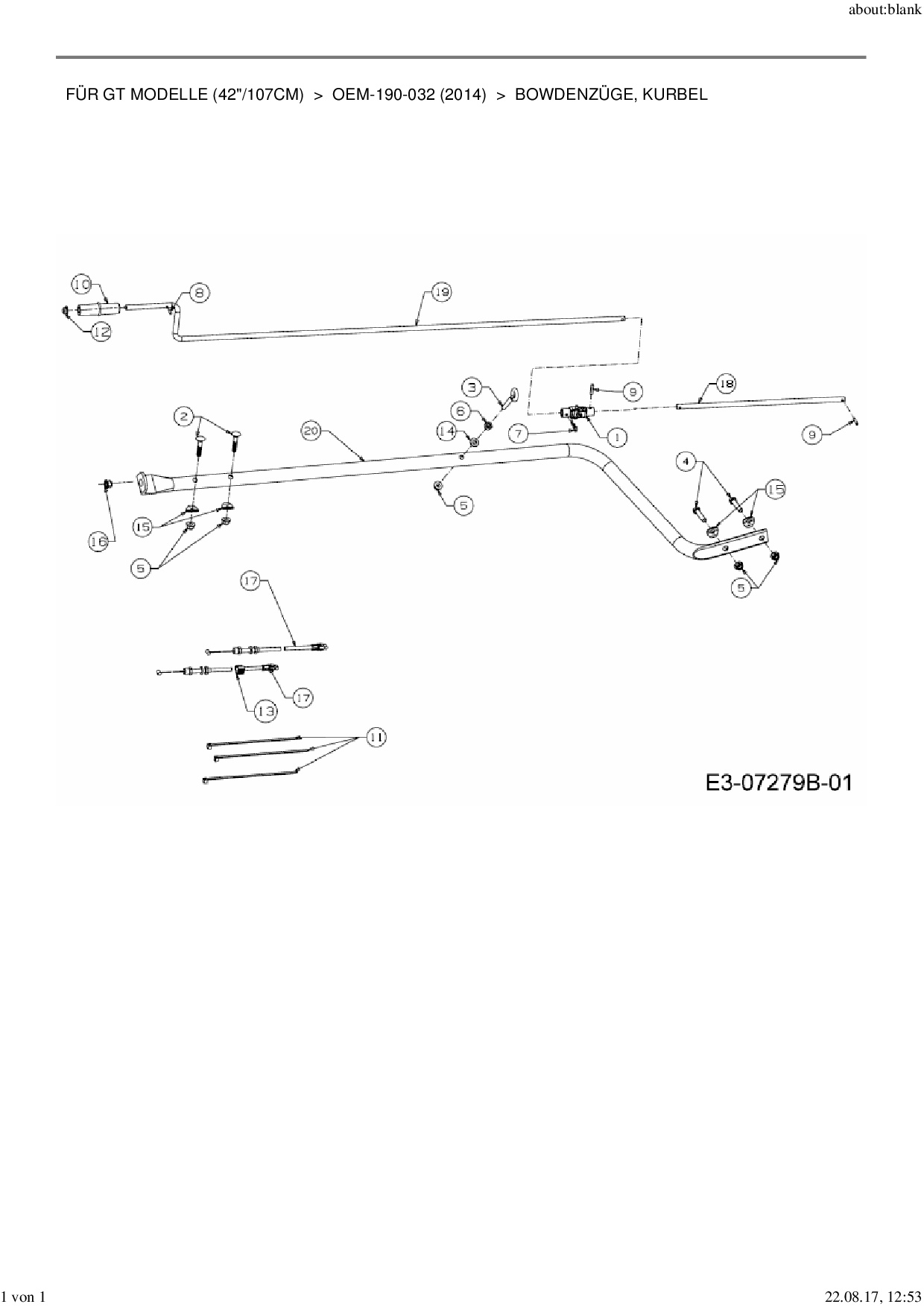 Download Ersatzteil-Zeichnung Zubehör Garten- und Rasentraktoren für GT Modelle (42"/107cm) Zeichnung Bowdenzüge, Kurbel (PDF-Format)