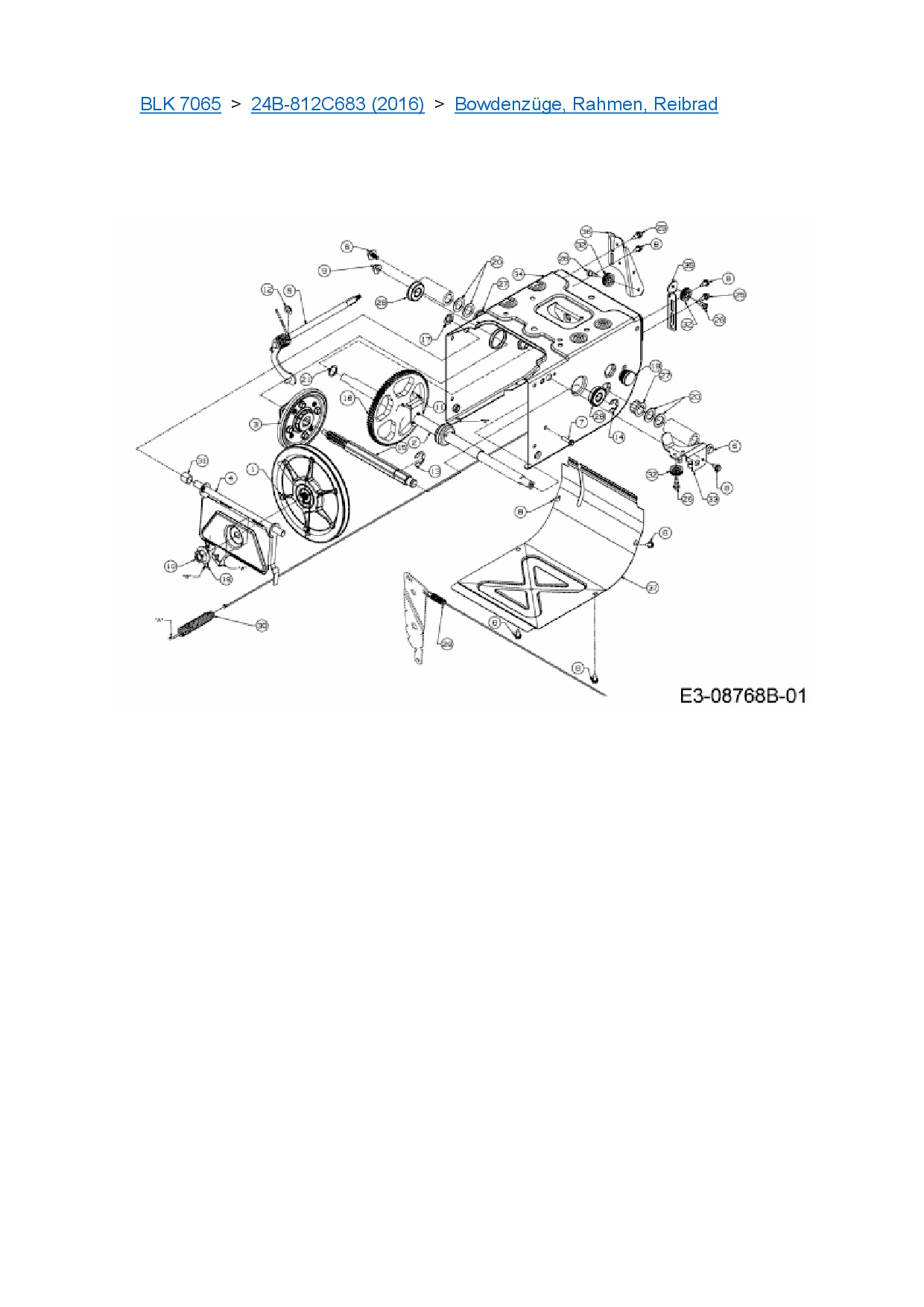 Ersatzteile für Kehrmaschine Black-Line BLK 7065 aus der Zeichnung Bowdenzüge, Rahmen, Reibrad: