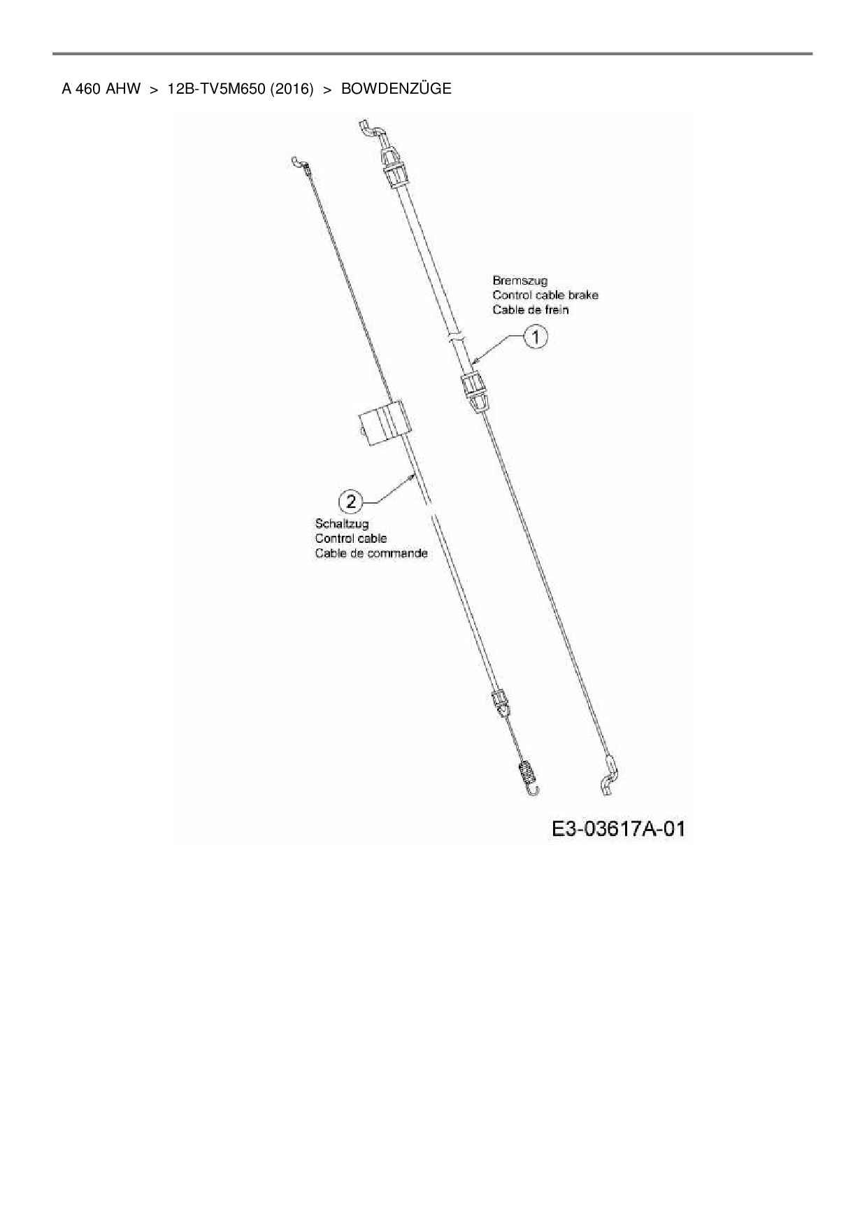 Ersatzteile für Motormäher mit Antrieb Wolf-Garten A 460 AHW aus der Zeichnung Bowdenzüge: