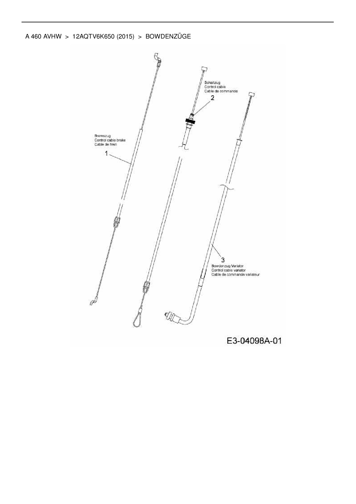 Ersatzteile für Motormäher mit Antrieb Wolf-Garten A 460 AVHW aus der Zeichnung Bowdenzüge: