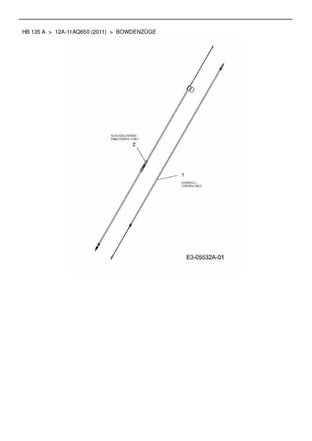 Ersatzteile für Motormäher mit Antrieb Wolf-Garten HB 135 A aus der Zeichnung Bowdenzüge: