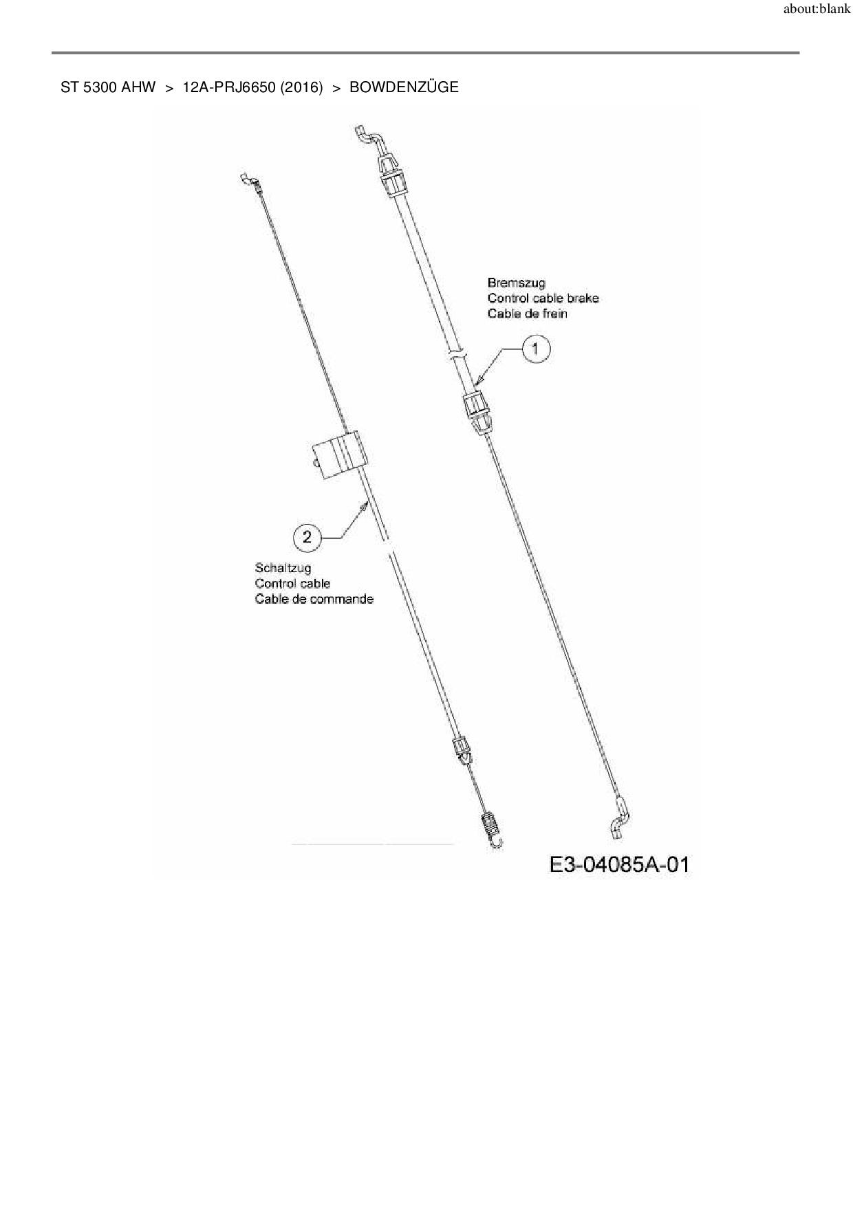 Ersatzteile für Motormäher mit Antrieb Wolf-Garten ST 5300 AHW aus der Zeichnung Bowdenzüge: