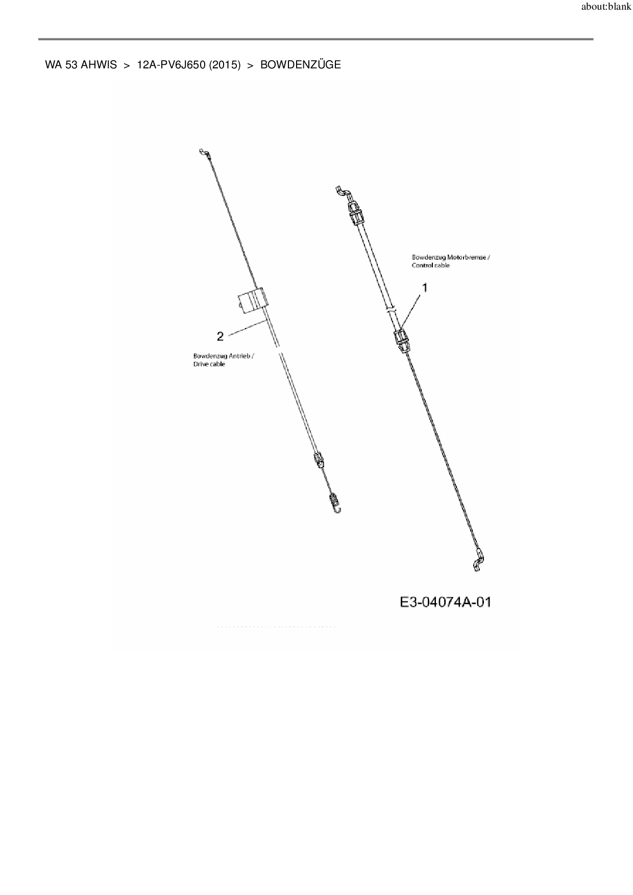 Ersatzteile für Motormäher mit Antrieb Wolf-Garten WA 53 AHWIS aus der Zeichnung Bowdenzüge: