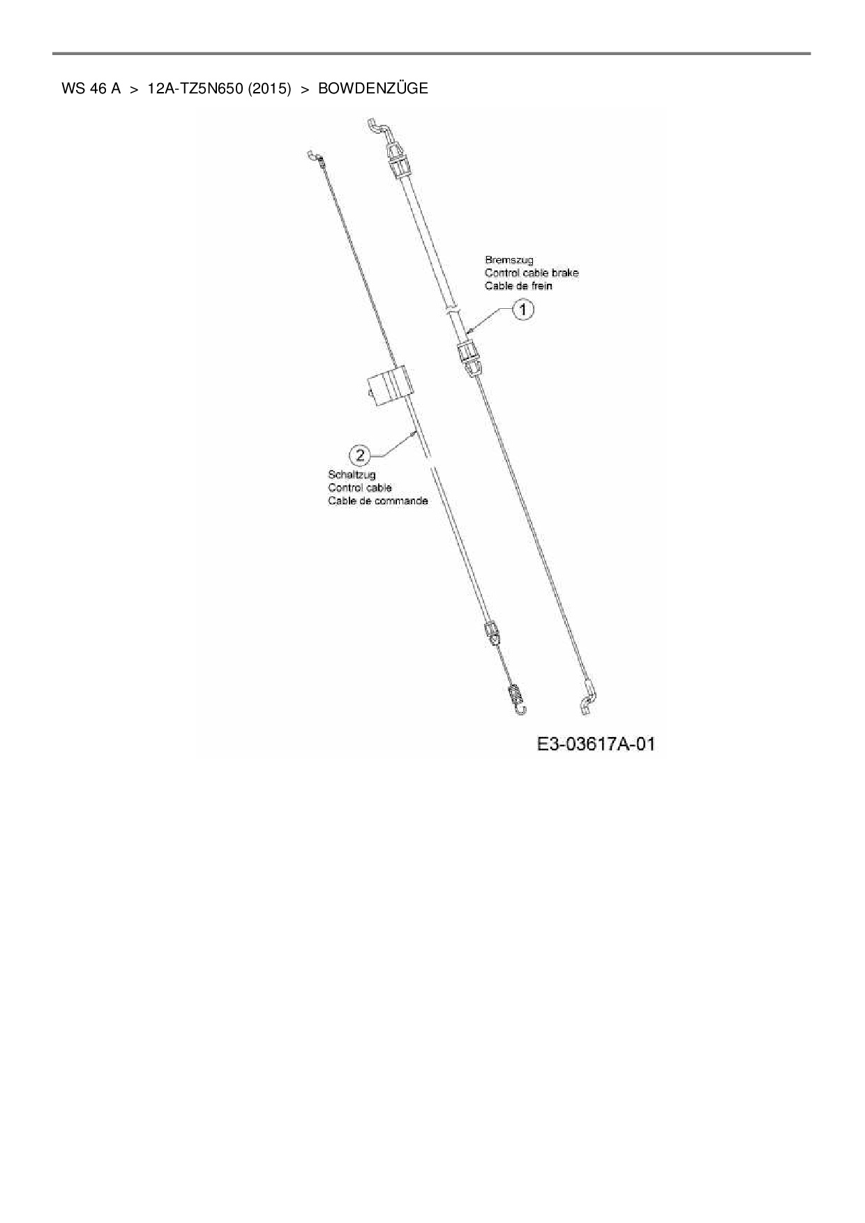 Ersatzteile für Motormäher mit Antrieb Wolf-Garten WS 46 A aus der Zeichnung Bowdenzüge: