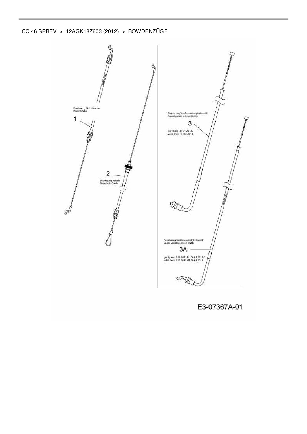 Ersatzteile für Motormäher mit Antrieb Cub Cadet CC 46 SPBEV aus der Zeichnung Bowdenzüge: