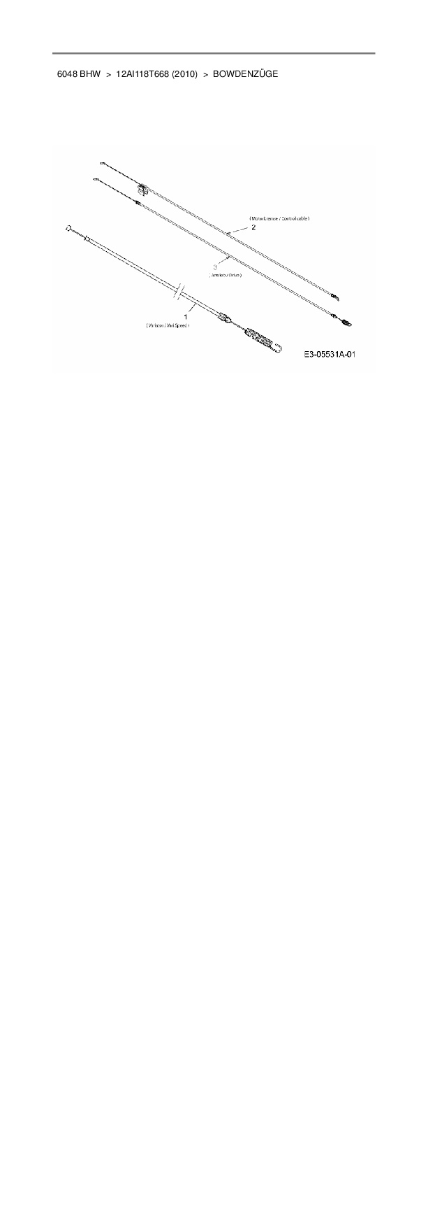 Ersatzteile für Motormäher mit Antrieb Mac Allister 6048 BHW aus der Zeichnung Bowdenzüge: