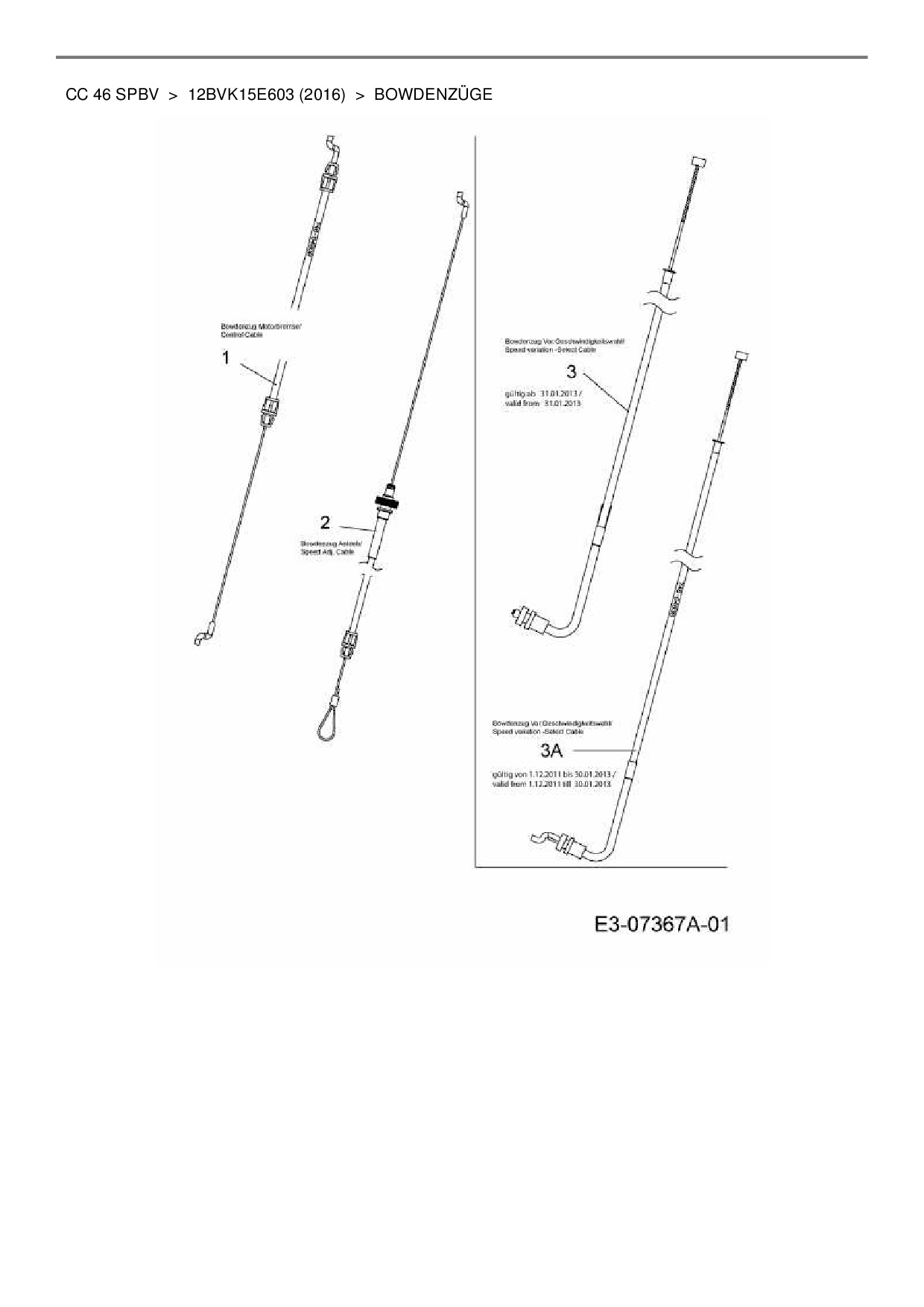 Ersatzteile für Motormäher mit Antrieb Cub Cadet CC 46 SPBV aus der Zeichnung Bowdenzüge: