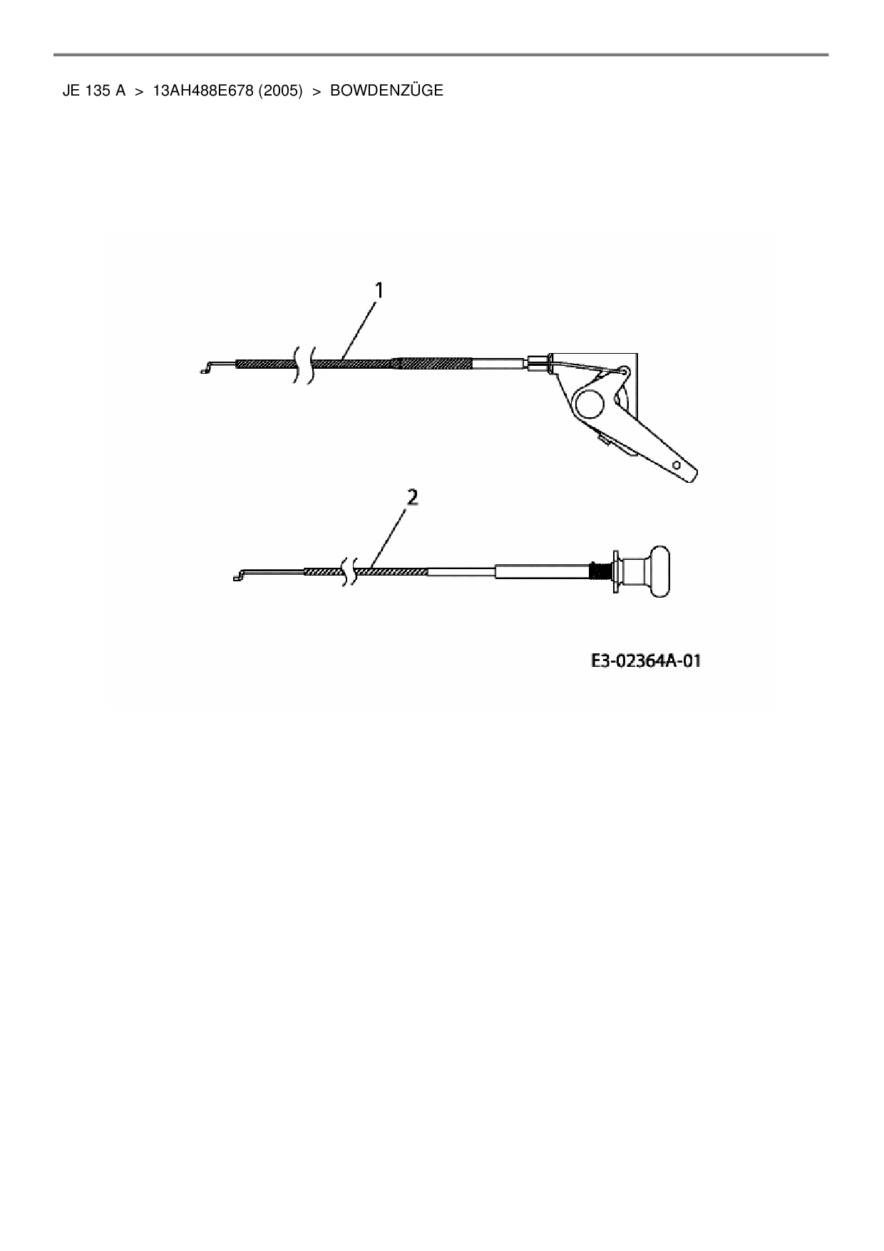 Download Ersatzteil-Zeichnung MTD JE 135 A Zeichnung Bowdenzüge (PDF-Format)
