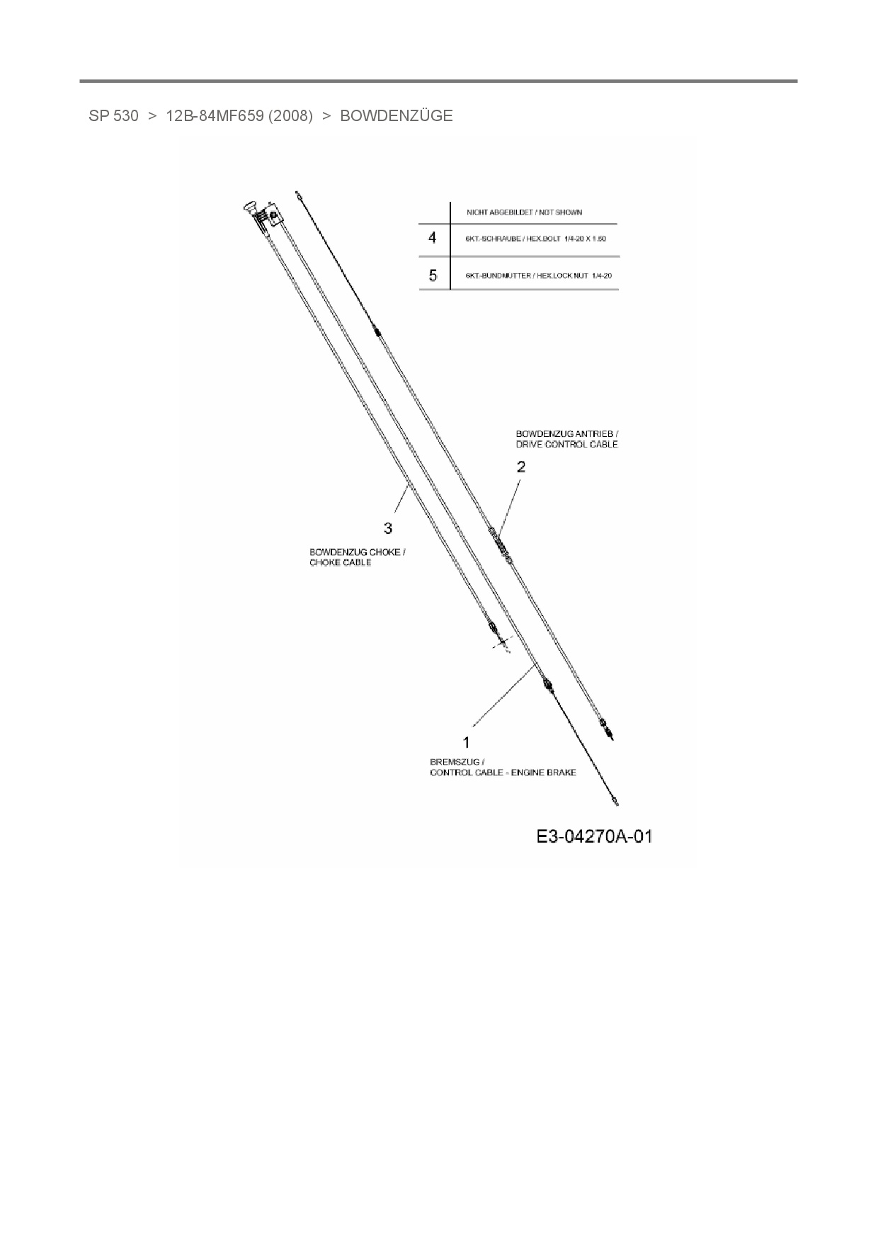 Ersatzteile für Motormäher mit Antrieb Mastercut SP 530 aus der Zeichnung Bowdenzüge: