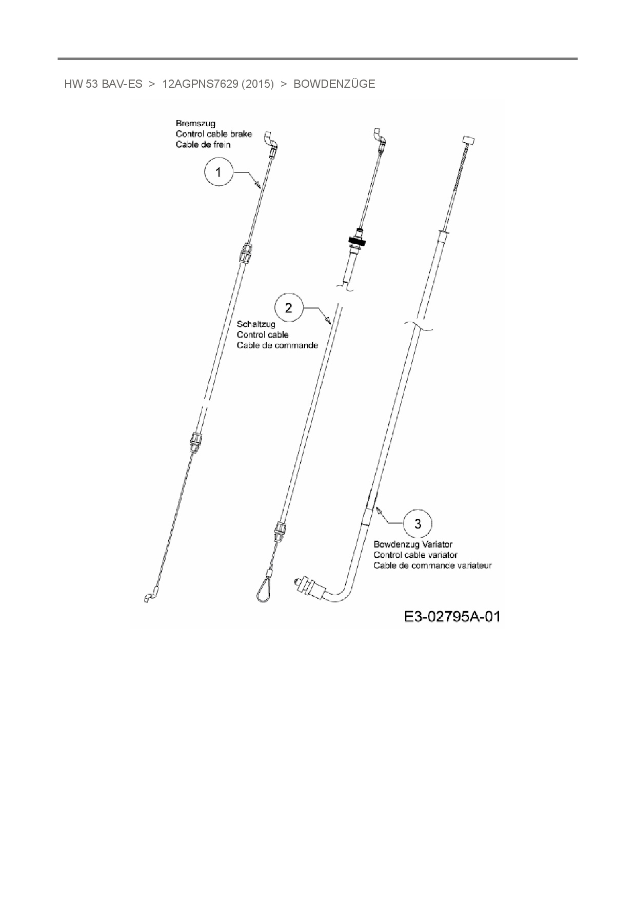 Ersatzteile für Motormäher mit Antrieb Mr. Gardener HW 53 BAV-ES aus der Zeichnung Bowdenzüge: