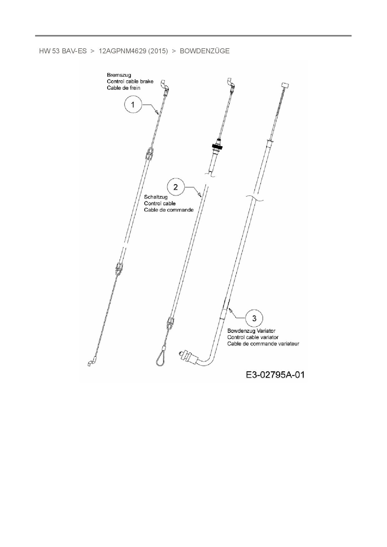 Ersatzteile für Motormäher mit Antrieb Mr. Gardener HW 53 BAV-ES aus der Zeichnung Bowdenzüge: