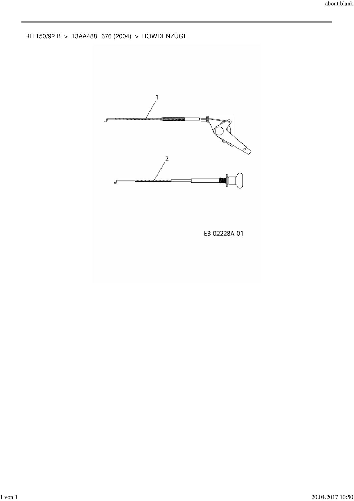 Ersatzteile für Rasentraktor MTD RH 150/92 B aus der Zeichnung Bowdenzüge:
