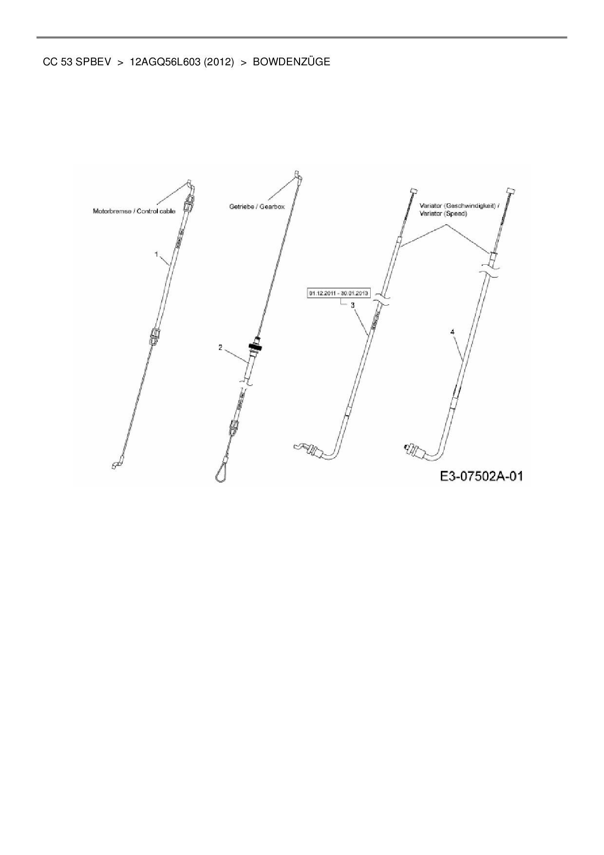 Ersatzteile für Motormäher mit Antrieb Cub Cadet CC 53 SPBEV aus der Zeichnung Bowdenzüge: