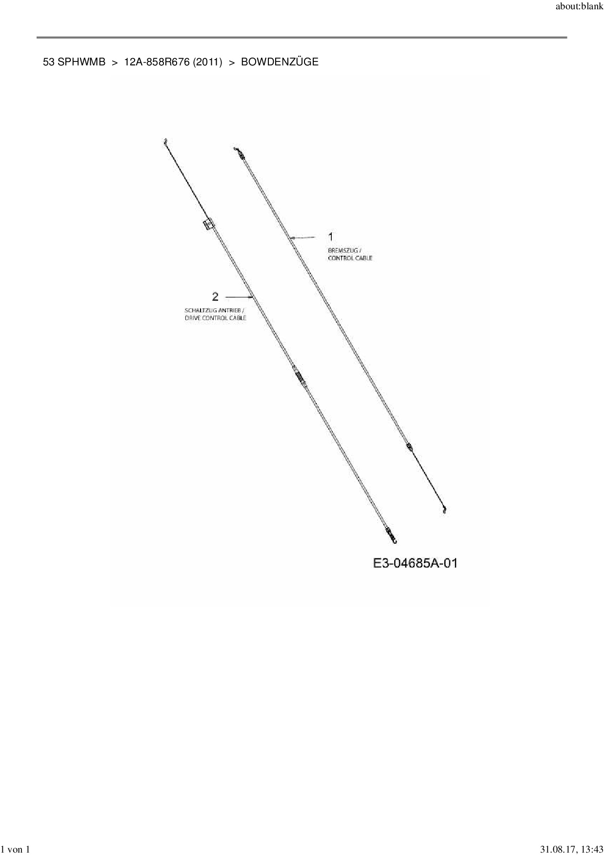 Ersatzteile für Motormäher mit Antrieb MTD 53 SPHWMB aus der Zeichnung Bowdenzüge: