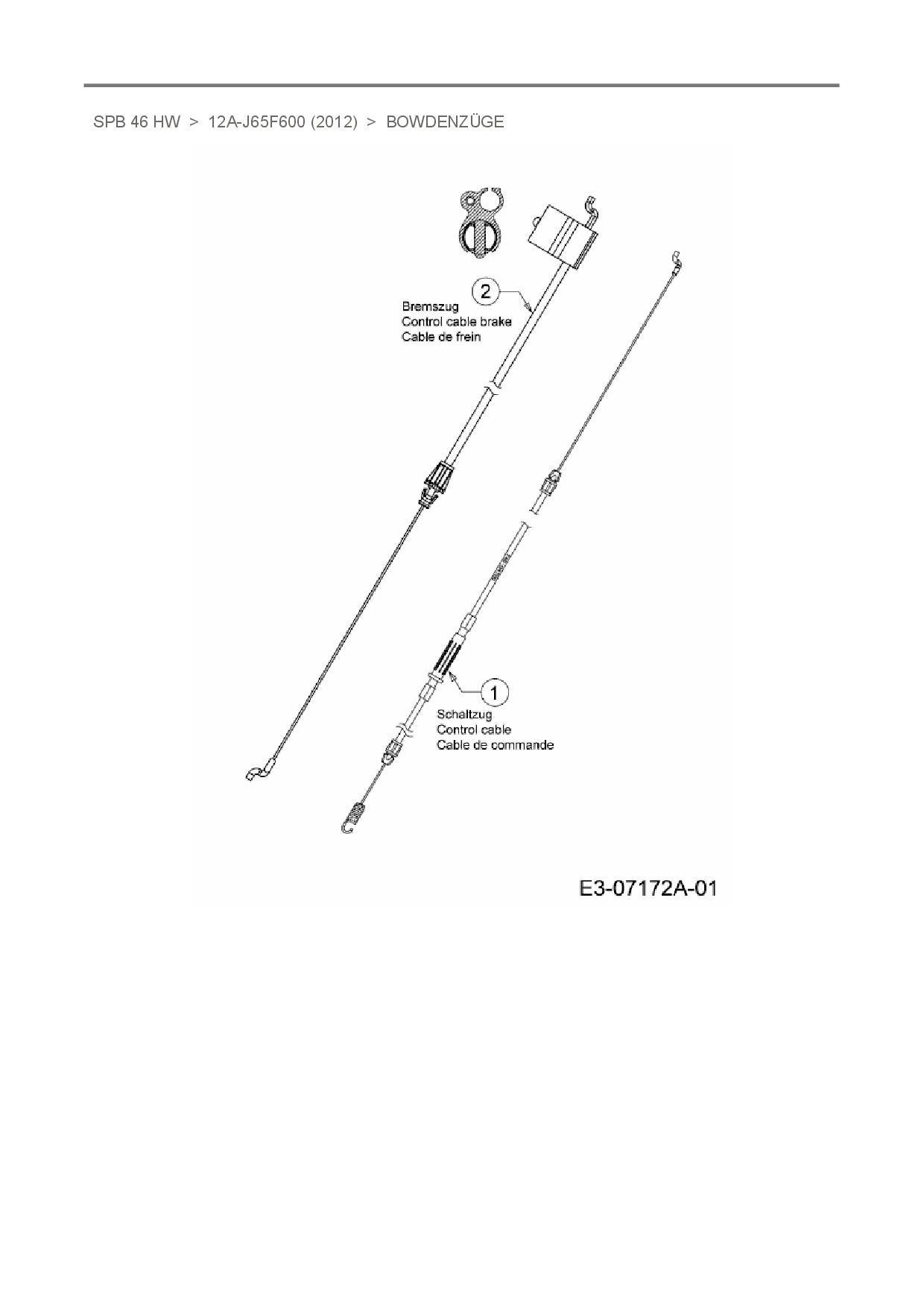 Ersatzteile für Motormäher mit Antrieb MTD SPB 46 HW aus der Zeichnung Bowdenzüge: