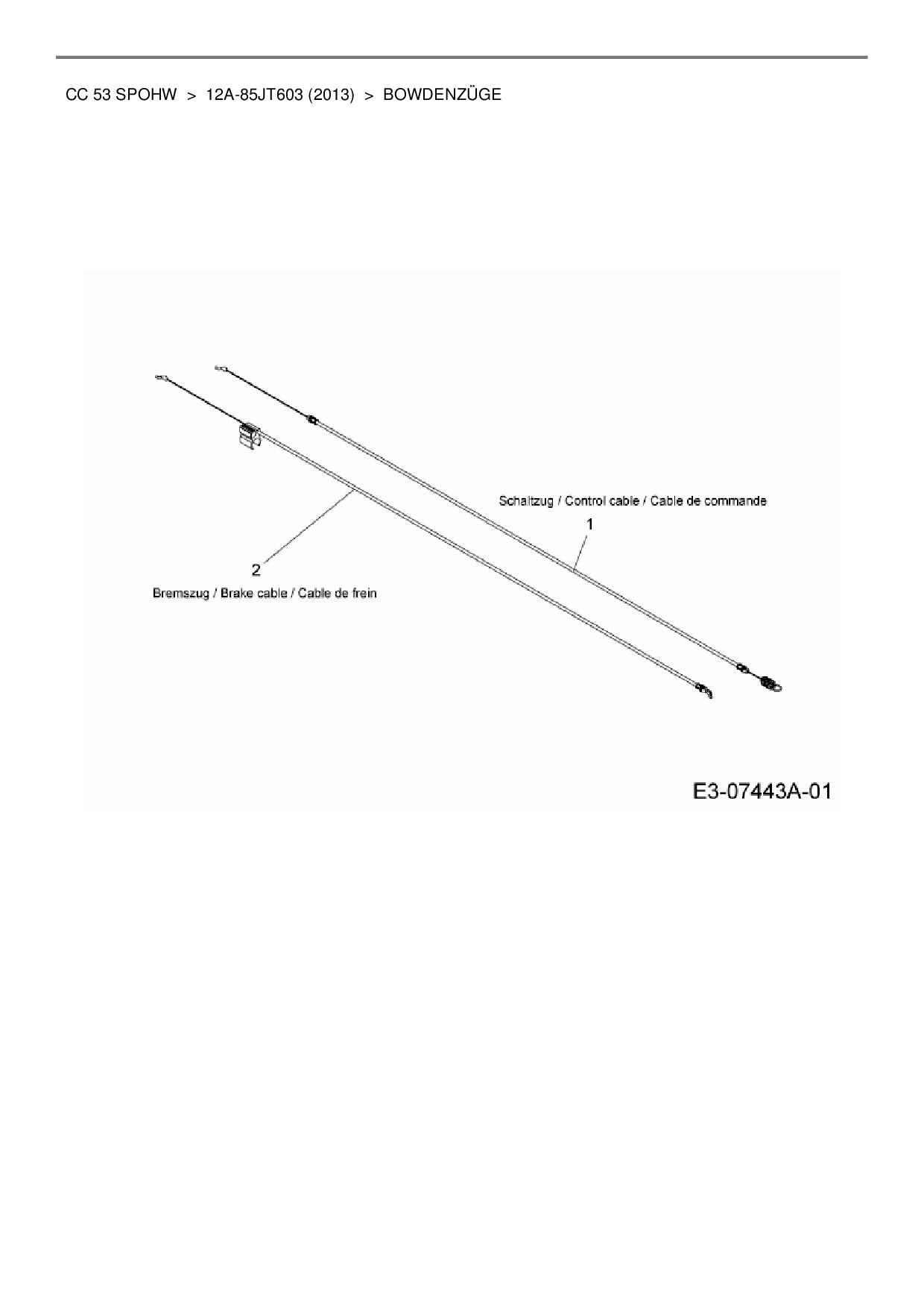Ersatzteile für Motormäher mit Antrieb Cub Cadet CC 53 SPOHW aus der Zeichnung Bowdenzüge: