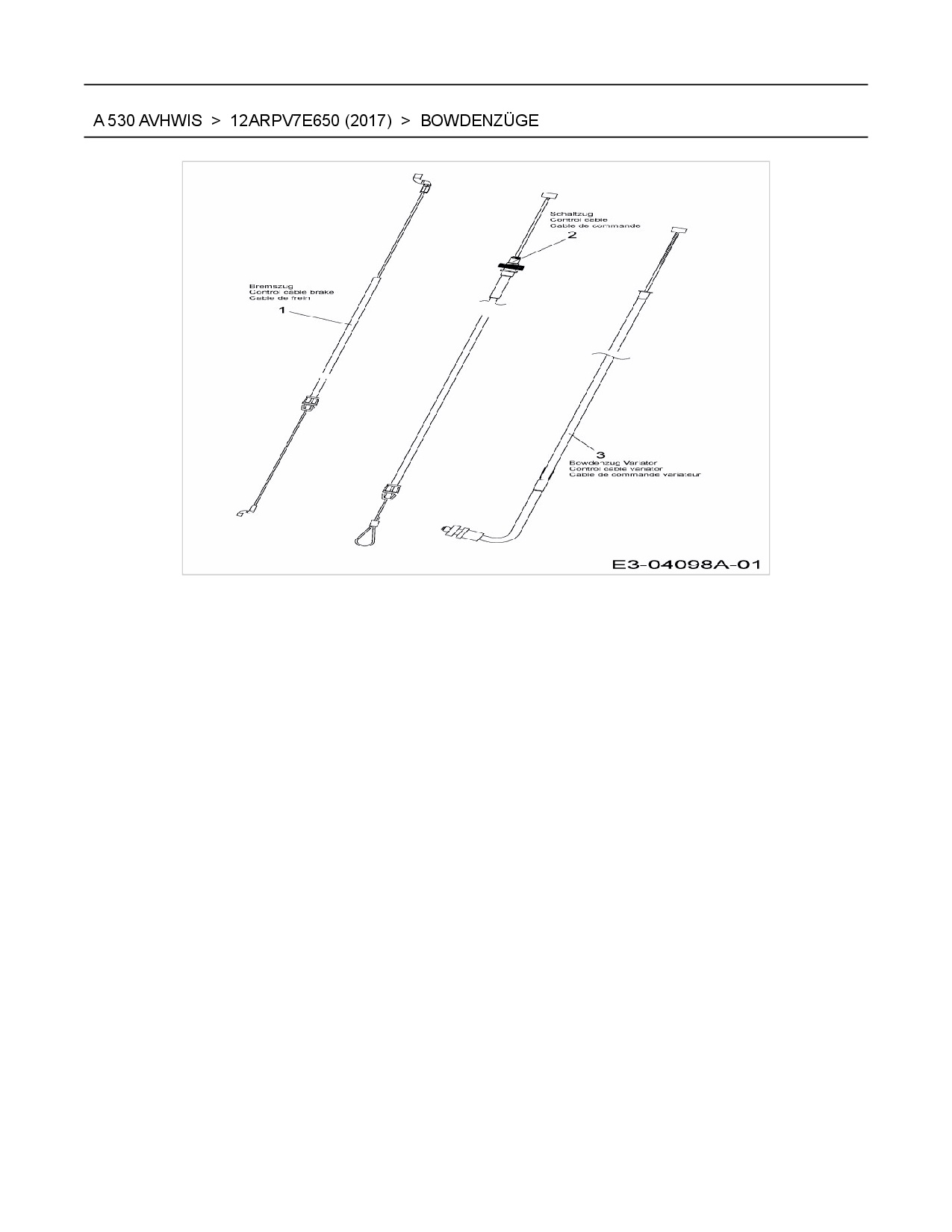 Ersatzteile für Motormäher mit Antrieb Wolf-Garten A 530 AVHWIS aus der Zeichnung Bowdenzüge: